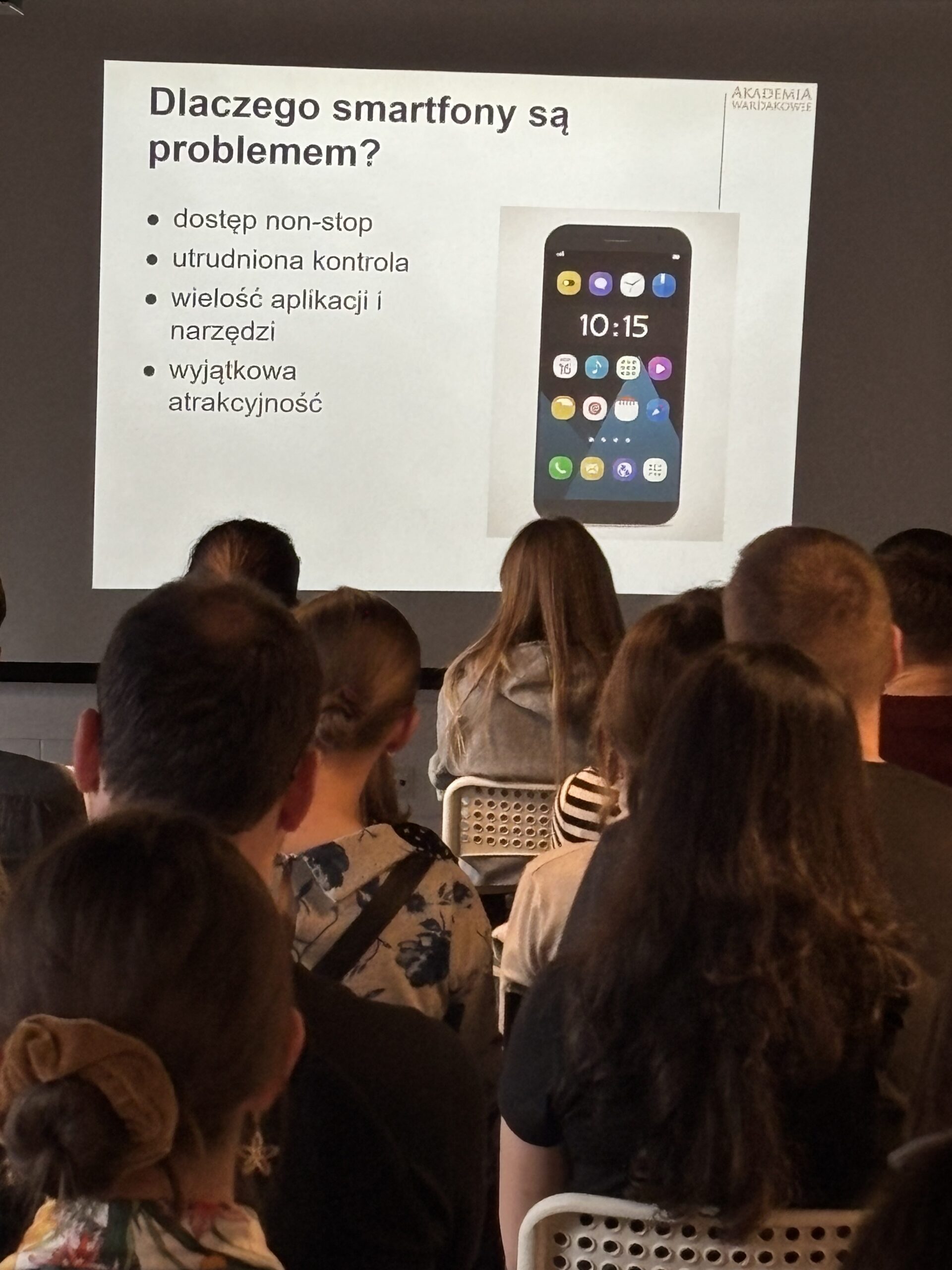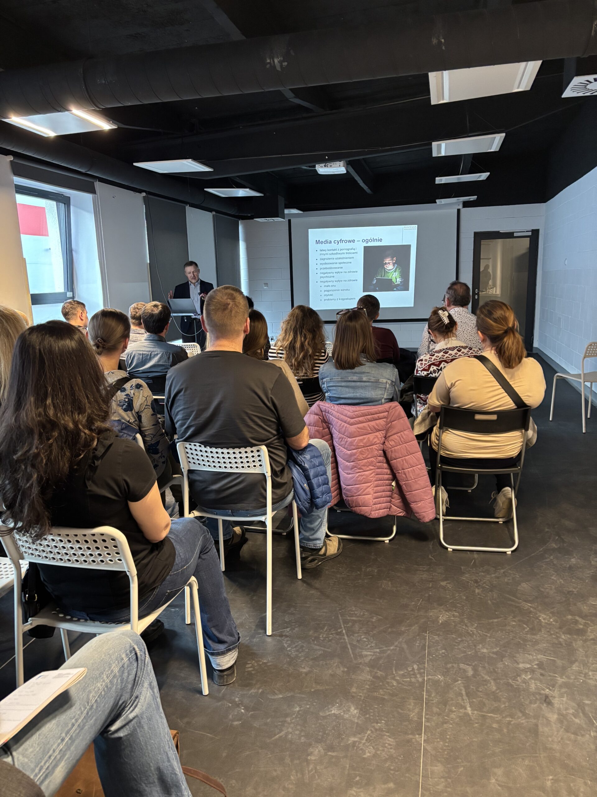 • warsztaty dla uczniów klas starszych dotyczące higieny cyfrowej i świadomego korzystania z technologii.